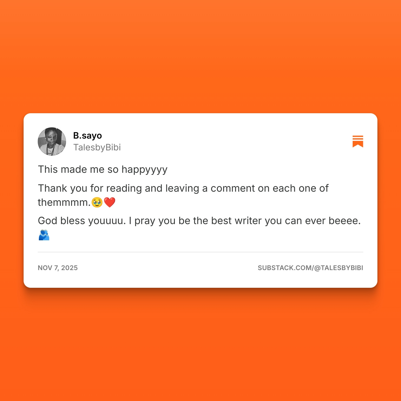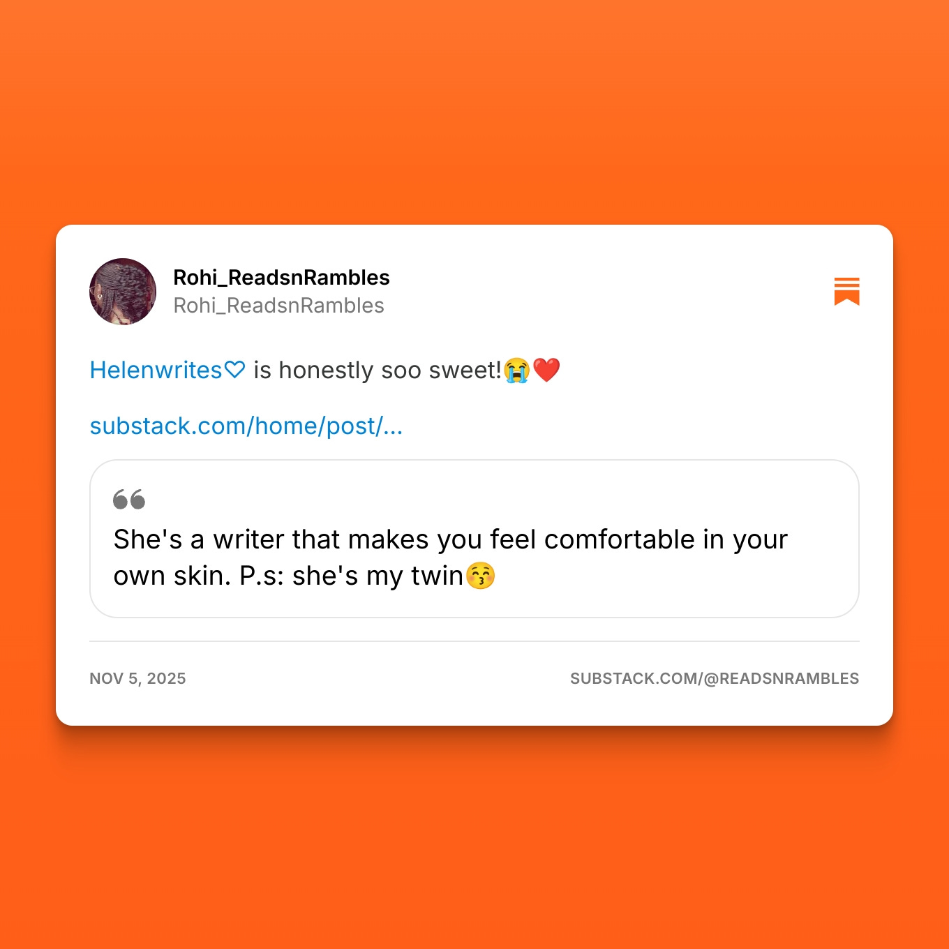 Thank you, Lyndsy. 🥹❤️ comments like this make me want to write more.